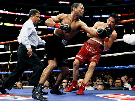 Mosley: I think it’s going to be a technical fight. But I think my speed will give him problems [the most]. He’s been fighting a lot of guys that are a lot slower and smaller than him. These guys have been either lightweights or junior welterweights [Writers note: the opponents referenced are Mayweather’s last two opponents: Ricky Hatton and Juan Manuel Marquez]. The guys I’ve been fighting are welter and junior middleweights. Shit, Winky Wright right now can fight at super-middleweight! These guys I fight have been big boys, while Mayweather’s guys are kind of small. [That’s a] big difference.