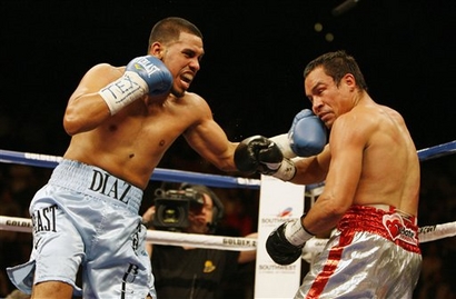 Early on, Diaz was winning their first 2009 encounter behind a stiff jab that forced Marquez to the ropes. From there Diaz worked the veteran over with trademark heavy volume punching. However, the cagey Marquez adjusted and began timing Diaz’s attack, particularly finding a home for the uppercut courtesy of Diaz’s tendency to lean over with his punches. The damage produced a cut and an eventual stoppage for Maquez in the 9th round.