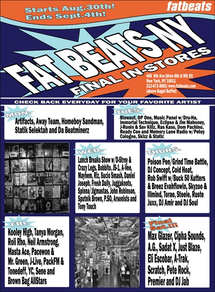 Fat Beats has confirmed the final in-store peformances before it closes its retail location in New York City.
