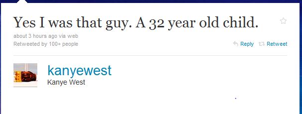 With Kanye’s deluge of Twitter commentary today on his regrets and trying to grow up, it’ll be interesting to see which direction he takes his music. He’s always been a manchild, but now appears to be the first time he’s consciously recognizing it. And better yet, he’s unsatisfied with what’s he seeing in the mirror. These are the first steps one must make in order to facillitate personal change.