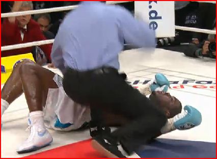 One more round was all Wladimir Klitschko needed. For the first time in the fight, Klitschko used his strength to push Peter off and rained down combinations in the form of straight rights, left hooks and right uppercuts. Peter was too drained from the rounds of abuse, and floundered around the ring before collapsing as the referee stopped the massacre.