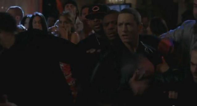In the scene, Eminem confronts the show’s lead character Vincent Chase, who is a movie star that’s fallen this season into a pathetic, alcohol and cocaine driven existence. After trying to resolve matters amicably, Marshall Mathers settles matters with a nice overhand right after being Chase taunts and accuses him of going soft in his superstardom (“Oh wow! What are you too mainstream now to fight your own fights, Marshall?!”)