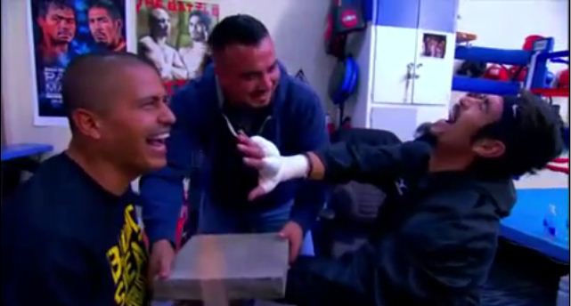 The most controversial matter from the episode was Margarito’s camp making light of the hand wrap controversy. His team attempted to wrap his hand in a cement block, while Margarito parodied Pacquiao’s imitation of him last week. The Tijuana Tornado’s November 13 fight will be just his second bout since serving a year suspension for attempting to use plaster-like hand wrappings against Shane Mosley.