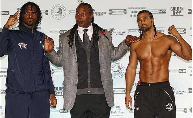 With the last great UK heavyweight champion, Lennox Lewis, between them, WBA heavyweight titlist David Haye and challenger Audley Harrison completed their weigh-in requirements earlier today in the UK.