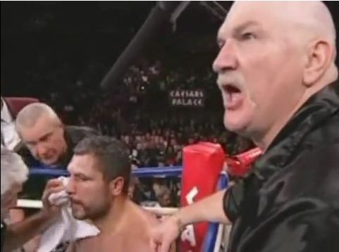I used to always look forward to John Ruiz fights. Not because I enjoyed Ruiz’s horrible punch and hold style, but due to his colorful, over the top trainer Norman “Stoney” Stone. The guy had words for everyone, whether it was the promoters, the referee, or even when he deemed his own fighter slacking off (“You got to fight this fucking guy!”). If John Ruiz fought like his trainer talked and acted, he’d have been the most popular American heavyweight of the last decade. When you watch some of this footage, you can’t help but think Stone could’ve had a career as a manager in professional wrestling. It really rings true in the last clip, where he snatches the belt from an opponent and lifts it above his head like he’s The Rock (Stone earned a slap for his troubles). Relive some of the most memorable moments from Stone’s career from the corner of John Ruiz.