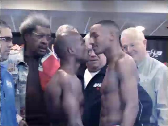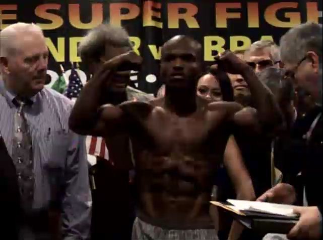 Bradley, sporting a shredded physique particularly in the ab area, tipped the scales right at 140 pounds. Bradley very animated after weighing-in, and almost never let his eyes leave Devon Alexander despite the mass of entourage and officials between them.