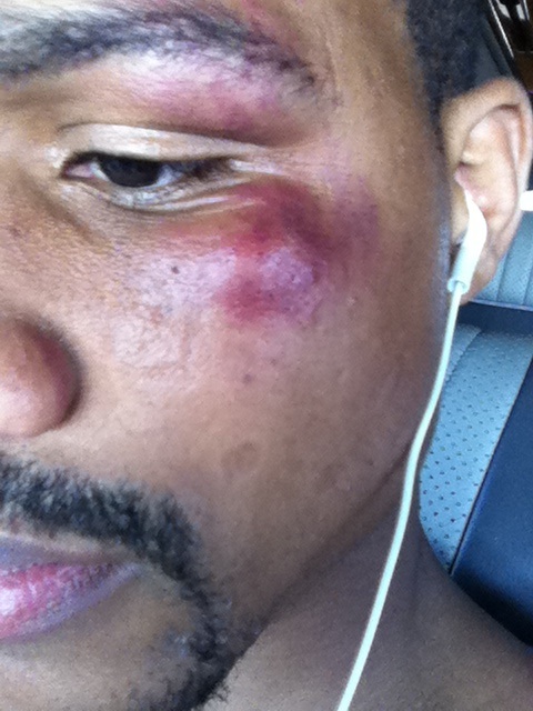 Andre Dirrell has been on the shelf for a year with lingering neurological effects (headaches, dizziness etc) from his disqualification win over Arthur Abraham last March. The above picture is the result of a recent sparring session Dirrell had with George Groves, who’s preparing for a match with James DeGale on May 21. Dirrell posted the picture himself and thanked Groves for the good sparring.