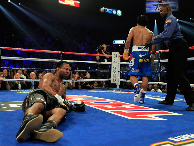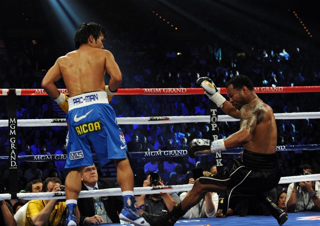 Las Vegas, NV — A hard, early knockdown from Manny Pacquiao took the fight out of Shane Mosley and rendered their WBO welterweight title match a glorified sparring session last night at the MGM Grand.