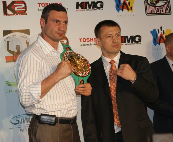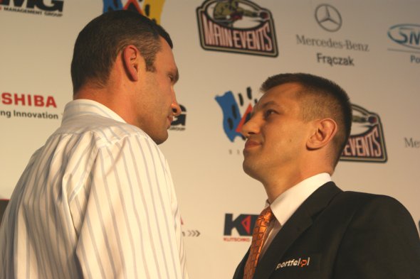 WBC champion Vitali Klitschko and Tomasz Adamek confirmed their September 10 title match with a Tuesday (May 24) press conference. Below are additional pictures and footage of their face-off. According to those in attendance, Adamek disclosed that he plans to set a fast pace and tire out the older Klitschko. Ever notice how Vitali never breaks the staredown first?