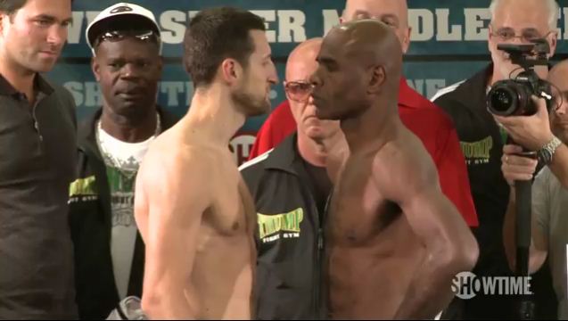 One only has to take a look at the physiques of Carl Froch and Glen Johnson to know they put forth their best training efforts for tomorrow night’s Super Six semi-final. Johnson weighed in 166 pounds. Despite being a pound less than his last fight, absent was the drawn look Johnson sported at his November weigh-in for Allan Green. Froch weighed just a 1/2 pound more than his last bout, a dominant win over Arthur Abraham, coming in at 167.5 pounds. Saturday’s (June 4) matchup airs at 9 PM.