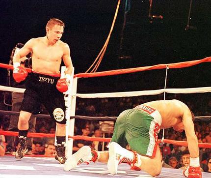 Sensing the end, Chavez went low at the beginning of the sixth and received a point deduction. Tszyu was not fazed and quickly dropped Chavez with a perfect straight right. Chavez careened forward on his knees for only the second knockdown of his career.
