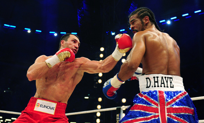 Wladimir easily took the early rounds by keeping Haye neutralized behind his long jab. This forced Haye to lunge with punches on offense and spend the majority of the first two rounds moving laterally to prevent Klitschko from setting up his powerful straight right.
