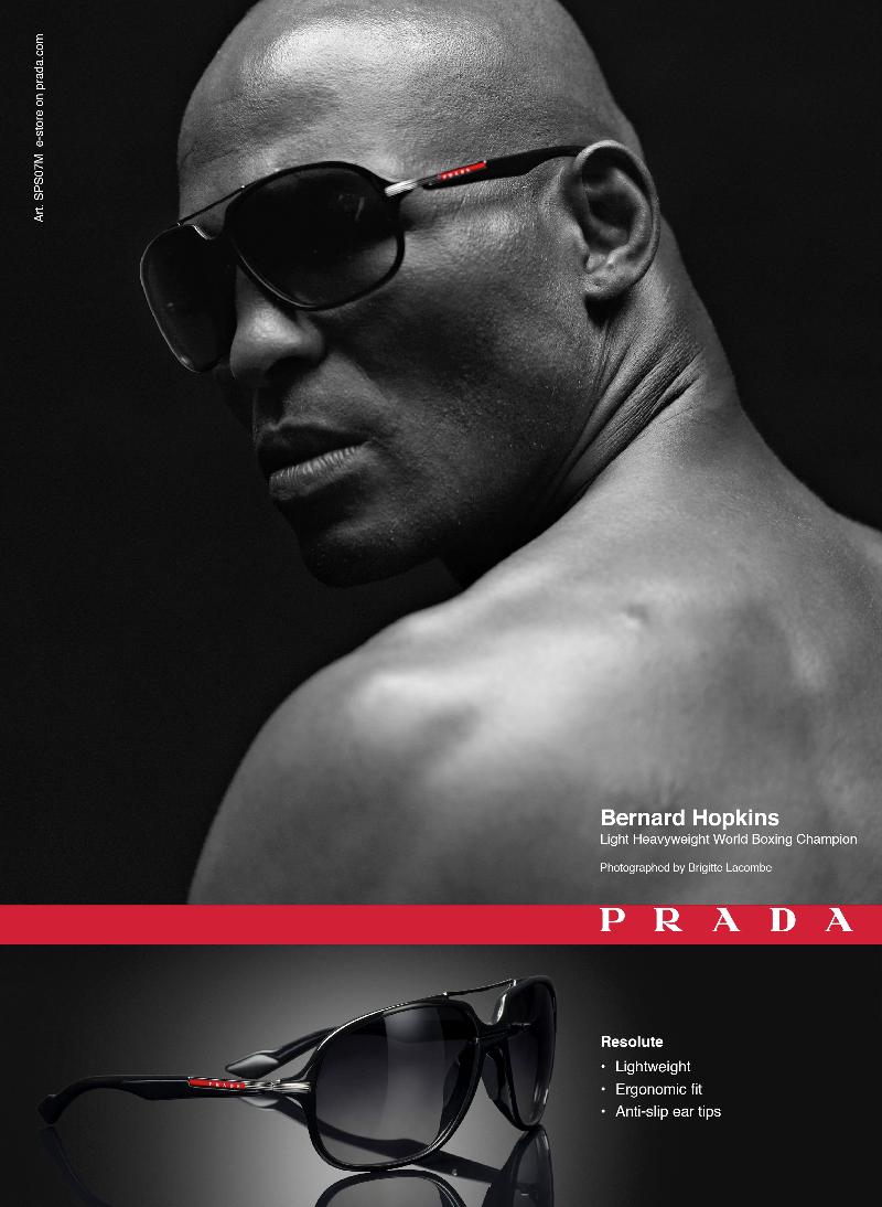 Reformed convict, champion, legend and now Prada model?! The last title is the latest reinvention for light-heavyweight champion Bernard Hopkins, who has signed on with Prada for an international eyewear campaign.