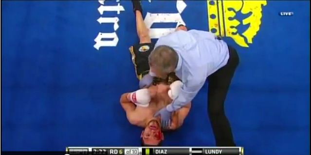 Last night’s (August 19) season finale of Friday Night Fights delivered a Knockout of the Year contender when Hank Lundy rebounded from an earlier knockdown to KO David Diaz at the beginning of the sixth round. Lundy was comfortably outboxing Diaz when he was dropped in the fourth with a leaping right hook. Lundy was almost stopped in that round but held on. In the fifth, a pouring cut over Diaz’s right eye threatened to stop the bout. It would be Lundy who closed the book on Diaz with a counter straight left deposited Diaz flat on his back. This matchup was a show-stealer that easily eclipsed the main event, which was an easy decision win for Demetrius Andrade over Grady Brewer. The entire Lundy-Diaz bout is available below in the second clip.