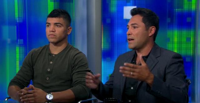 Oscar De La Hoya and Victor Ortiz appeared last night (September 1) on Piers Morgan’s CNN show to discuss the big fight against Floyd Mayweather on September 17. The interview served as another opportunity for Ortiz to discuss his challenging childhood and having to raise his younger brother sans their parents. De La Hoya, who’s been serving as a mentor to Ortiz, says Victor’s story and drive has personally inspired him. It’s not included here, but De La Hoya also mentioned Ortiz has the ability to be an all-time great, and sees the Mayweather bout as a “passing of the torch.”