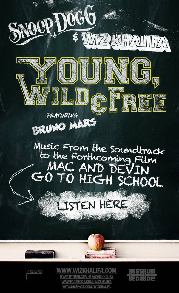 Snoop Dogg is happily married, has three children and turns 40 next week on October 20. This things alone should disqualify him being on a track called “Young, Wild and Free.” But since marijuana is being celebrated, the Doggfather can have a say. This happy go lucky track will be included on the soundtrack to Mac and Devin Go to High School.