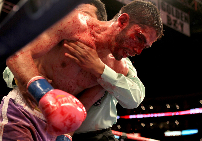 Just what boxing needed, back to back controversial and unsatisfying endings to high-profile (and high-priced) pay-per-view fights. The two final bouts of tonight’s card seem to sum up how boxing has lately been shooting itself in the foot. For every positive step forward (DeMarco vs. Linares), something immediately happens to push the sport two steps back (Hopkins-Dawson debacle).