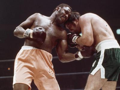 Their professional fight saw Mathis jump out to an early lead by boxing Frazier and tying him up in close. Frazier never got reckless and made sure to concentrate his attack on Mathis’ soft body. Having never gone more than seven rounds, Mathis began to falter by the 10th. Frazier would end matters in the 11th with a murderous left hook out of an attempted clinch.