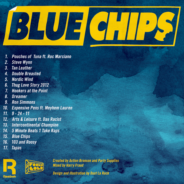 Just a few months removed from his Well Done album with Statik Selektah, Action Bronson has a new collabation project on deck with Party Supplies entitled Blue Chips. The main downloading point of this mixtape is that it’s filled with all original material. That’s right, Bronson and Party Supplies banged out 16 tracks from what was initially a one-off studio session. The beats are varied: one track might feature symphonic arrangements, while another might have a soul or blaxploitation loop. Bronson navigates them all well while incorporating pop culture nods like snarky homages to pro wrestling personalities.