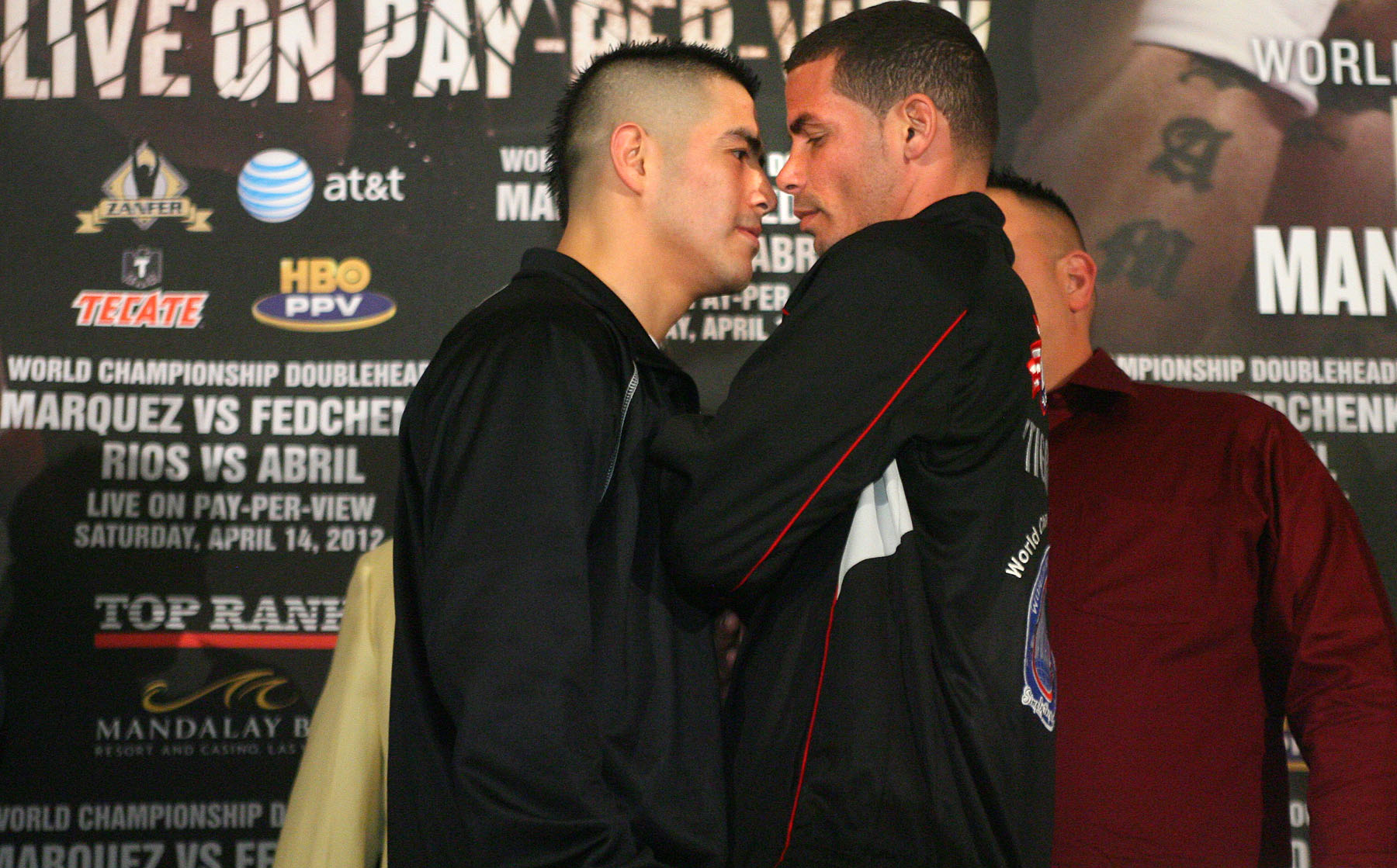 Brandon Rios and Richard Abril got into yet another heated confrontation ahead of their WBA lightweight title match this Saturday (April 14).