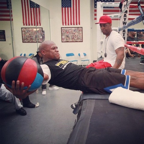 Mayweather began his own camp on March 1. However, fans are well aware that Mayweather never takes too much time off from the gym and stays in shape year round. For this camp, he has set training hours of 4-7 PM daily. The routines are a mix of sparring sessions, heavy bag, speed bag, jumping rope and body work. In addition, he incorporates random runs during the afternoon and overnight. Even though this fight will only be his second appearance at junior middleweight (154 pounds), he revealed the training has become easier since the contracted weight is close to his normal walk-around physique.