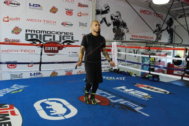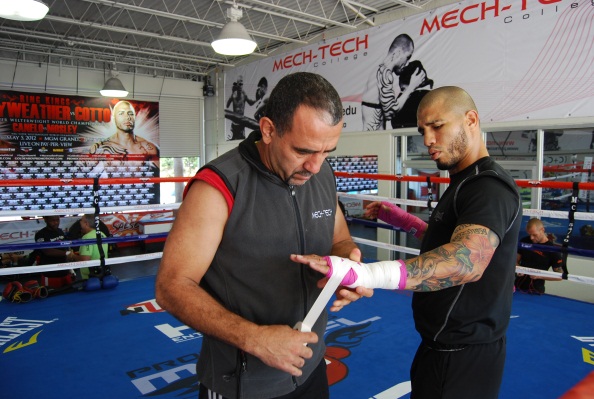 Miguel Cotto’s training has a much more relaxed feel. Recent videos have shown trainer Pedro Diaz focusing on Cotto matching Mayweather’s footwork, roadwork and counterpunching from various angles. Far as the weight, Cotto is sticking with his mother, who’s served as Team Cotto’s unofficial nutritionist for the last several years. With his family in camp with him, Cotto’s memories of his late father and original trainer, Miguel Cotto Sr., is fueling his mental motivation.