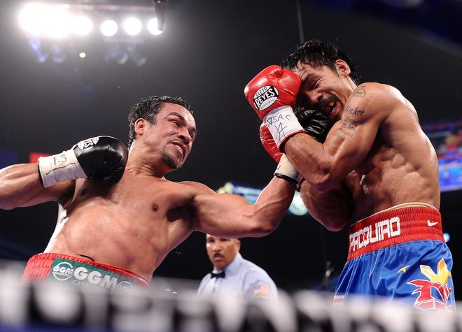 “Juan really understands how to fight southpaws. He’s a very smart man and an excellent fighter,” said Pacquiao in a recent blog entry. “His deliberate and patient style of fighting is a product that comes from experience and experience against great opposition. He’s a brilliant counterpuncher.”