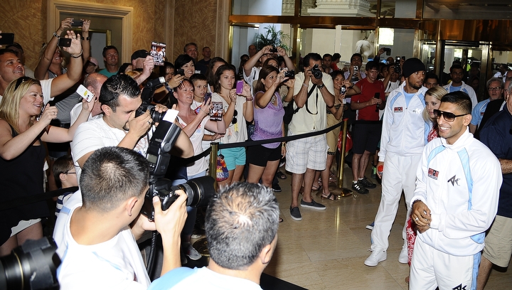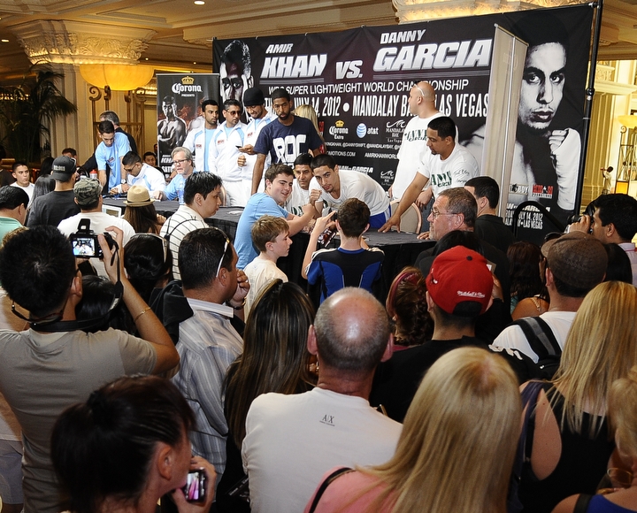 LAS VEGAS, NV — Amir Khan and Danny Garcia greeted fans yesterday during their official arrival for this Saturday’s unification battle at the Mandalay Bay.