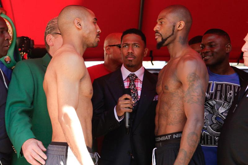Prediction: Today’s weigh-in was all about whether Chad Dawson, who was coming down seven pounds to face Andre Ward, would be able to make the 168 pound super middleweight limit comfortably. Photos of yesterday’s final press conference started murmurings that Bad Chad was weight-drained, as he was thinner in the face than most were used to. But these photos show not only a healthy, strong-looking Chad Dawson, they show a Dawson that looks like he made the weight better than champion Andre Ward!