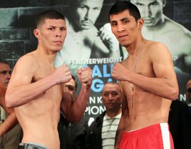 NOTES: Legends Marco Antonio Barrera and Julio Cesar Chavez Sr. were in attendance. Salido may have had some problems making weight as he gulped down lots of fluids right after hitting the scale. Rosado could also been seen asking for fluids but didn’t look drained. Golovkin was his normal jolly self and took a few pictures sporting the jersey of Knicks star Carmelo Anthony.