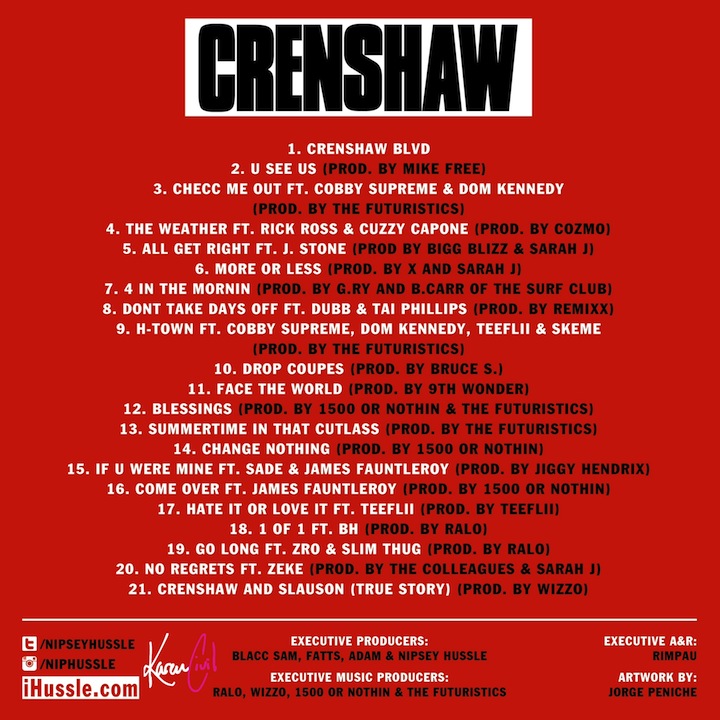 “When iTunes hit the market, Tower Record stores closed down, just like when Netflix came around, Blockbuster went out of business,” Nipsey Hussle explained in a statement. “Nipsey Hussle is here to let the world know the major labels are next to go with his #Proud2pay & #FuccthaMiddleman campaigns. After almost 2 years absent, Nipsey returns with #CRENSHAW as the mix-tape before #VictoryLap.”