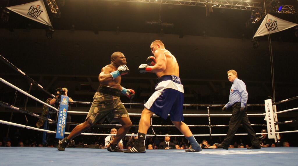The 5’9, 204 pound Wilson showed no fear of the towering 6’3, 224 pound Glazkov. Wilson’s strategy was to explode with haymakers hooks at several points during each round. The shots troubled Glazkov, but they were sporadic and after the first round, Glazkov used his reach advantage to smash home clean jabs down the middle and straight rights. As the bout progressed, Glazkov mixed in nice hook combinations to the body. Wilson took the shots and only started to show fatigue in the final two rounds. By then, he had won the crowd over with his effort and succeeded in cutting, swelling, and bloodying Glazkov’s face.