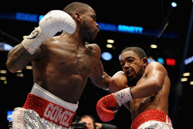 The smaller Gomez got inside Arnett’s left jab at will and pounded the body with right and left hooks. Gomez also used his right hand as a potshot weapon from the outside to freeze Arnett. That strategy paid off handsomely when he rocked Arnett with a lead right upstairs, and dropped him with a left hook to the body. Because the two knew each from the amateurs and had fought/sparred previously, there was a lot of trash-talking (mostly on Gomez’s part). At one point, Gomez was even instructing Arnett on how to make adjustments (“Go to the body! No, no…work the body!”). While fun to watch, Gomez admitted afterward that those antics, including a bad stretch of shoulder-rolling that gave Arnett some life in later rounds, probably prevented him from getting a stoppage.