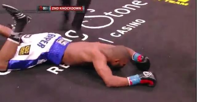 Edwards was stepping in looking to time a right hand counter, and barely needed 30 seconds before he caught Jack coming in with an overhand right. Jack crashed to the canvas and got up on unsteady legs. When attempting to clinch, he was clubbed to the floor a second time with another right followed by a glancing left hook. Jack again beat the count, but couldn’t stand up straight, resulting in the referee appropriately calling the fight off.