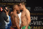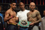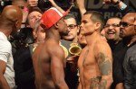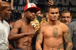 LAS VEGAS — There were no surprises at today’s weigh-in as all the fighters for the “The Moment” pay-per-view made weight without issues. Physique-wise, the standouts inclued Floyd Mayweather, Amir Khan, J’Leon Love and Adrien Broner. In addition to the weigh-in, Atlanta rapper 2 Chainz performed a short 15-minute set. The pay-per-view airs tomorrow night at 9 p.m. ET.