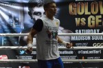 SANTA MONICA, CA — 10 days out from his biggest challenge in former titlist Daniel Geale, Gennady Golovkin held an open media workout in Los Angeles. GGG answered a few questions on the matchup and his future targets. From the pictures, GGG has remained in fearsome shape despite taking time off due to the death of his father. Golovkin vs. Geale airs on HBO July 26.