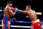 A FAST PACE, BUT NOT ON PORTER’S TERMS: As expected, Porter came out with a frenetic pace, leading to lots of awkward tie-ups and indiscriminate clubbing inside shots from both guys. But, there was a distinct difference between this pace and what Porter did with Devon Alexander and Paulie Malignaggi — Porter wasn’t able to have his way inside. Those aforementioned fighters found themselves being walked backward and bullied. Brook was able at times to walk and push Porter backward, leaving just enough room for Brook to land flush lead jabs and rights hands (one of the latter shots punctuated the end of the first and knocked Porter right into his corner).