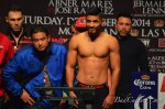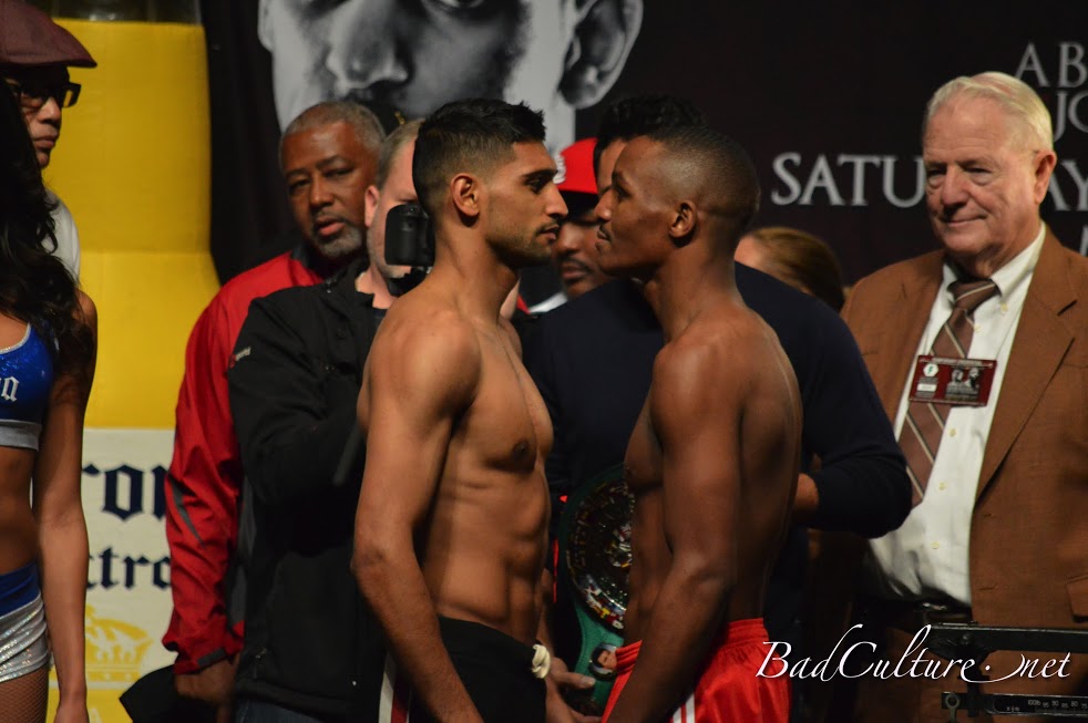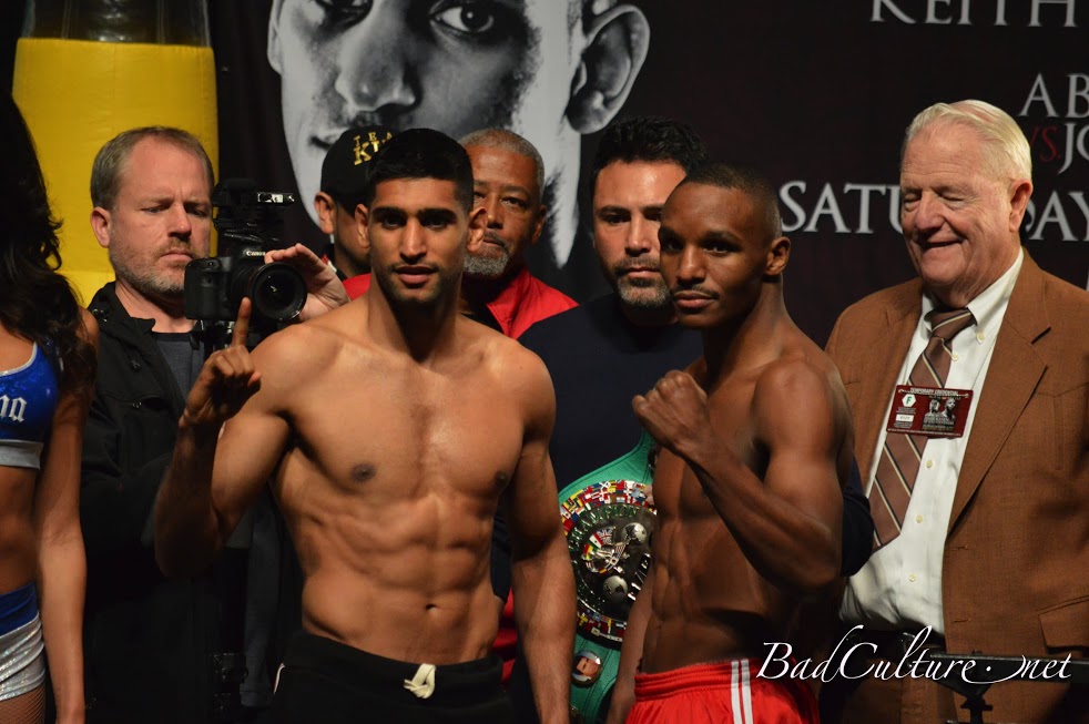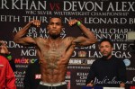 LAS VEGAS, NV — Amir Khan and Devon Alexander both made the welterweight limit of 147 for Saturday night’s big welterweight contest. Although the weigh-in was sparsely attended, the bout holds big implications for the career of Floyd Mayweather, who is in dire need of an opponent with star power for his usual Cinco de Mayo date (endangered by talks between Canelo Alvarez and Miguel Cotto). So does Khan become Mayweather’s savior, or does Alexander become the ultimate spoiler of 2014?