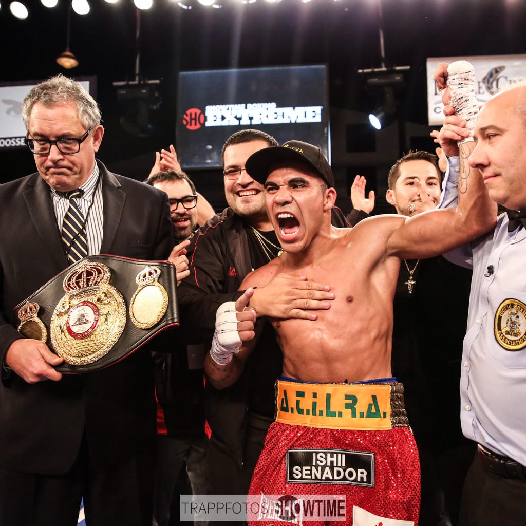 Tamayo could not withstand Cuellar’s aggression and quickly came under constant heavy hooks to the body. Tamayo was forced to take a knee twice in the fourth off left hooks downstairs. A ringside doctor nearly stopped it early in the fifth due to heavy swelling on Tamayo’s face. A minute later, the challenger was down in a corner off another left hand, forcing referee Mark Nelson to call the bout with a 1:48 left.
