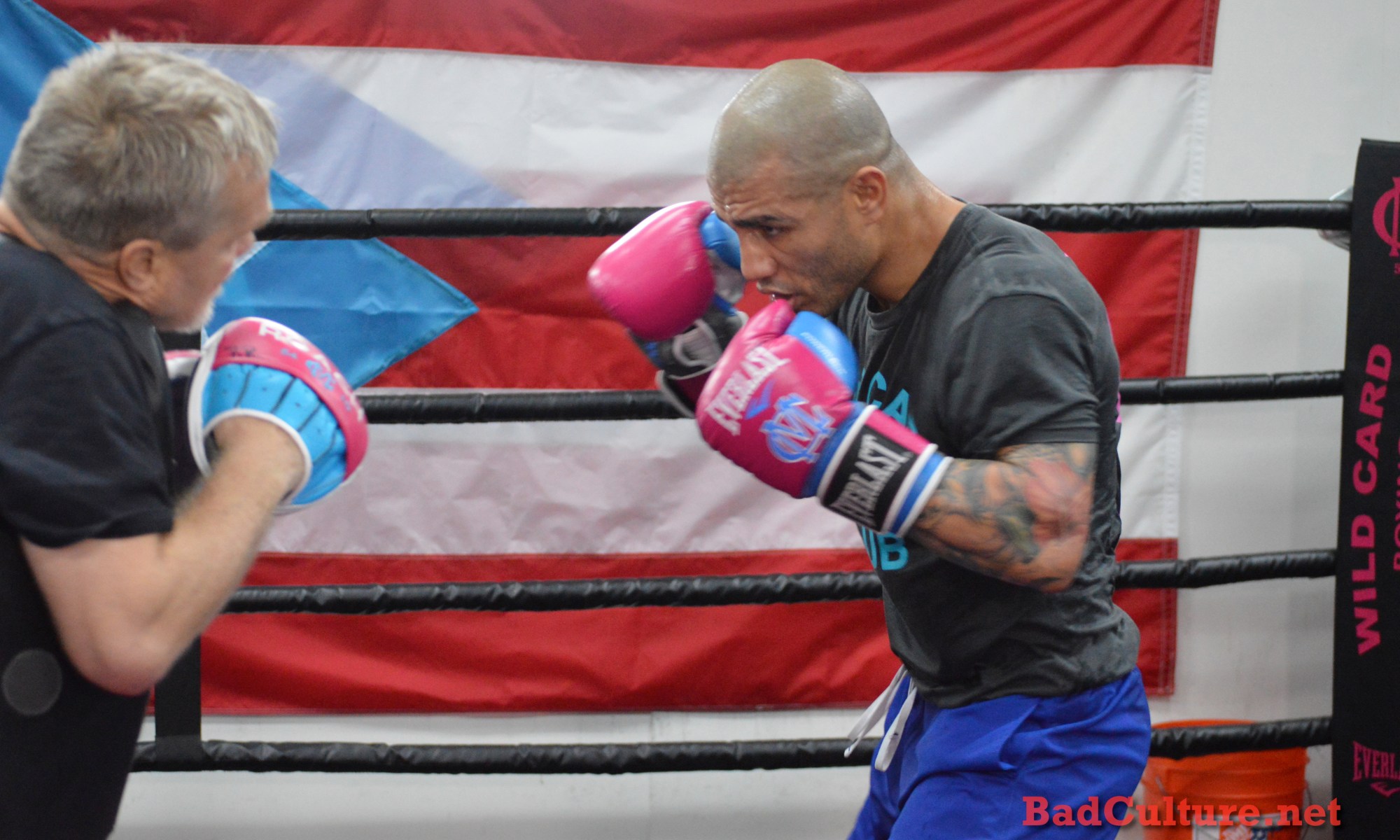 LOS ANGELES — Miguel Cotto ventured to the Wild Card gym to host a special training session for assembled media. Cotto will be making his first defense of the WBC/linear title he lifted from Sergio Martinez last summer when he faces Daniel Geale on June 6 at Madison Square Garden.