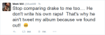 Far as Drake’s response, he needs to take it to the booth with a direct answer. No subliminals on Twitter, interviews or in a song. The man challenged your pen game and worth as an emcee. I know many in the younger emcees shy away from direct confrontations, but there is no other way for Drake to handle this and not lose face.