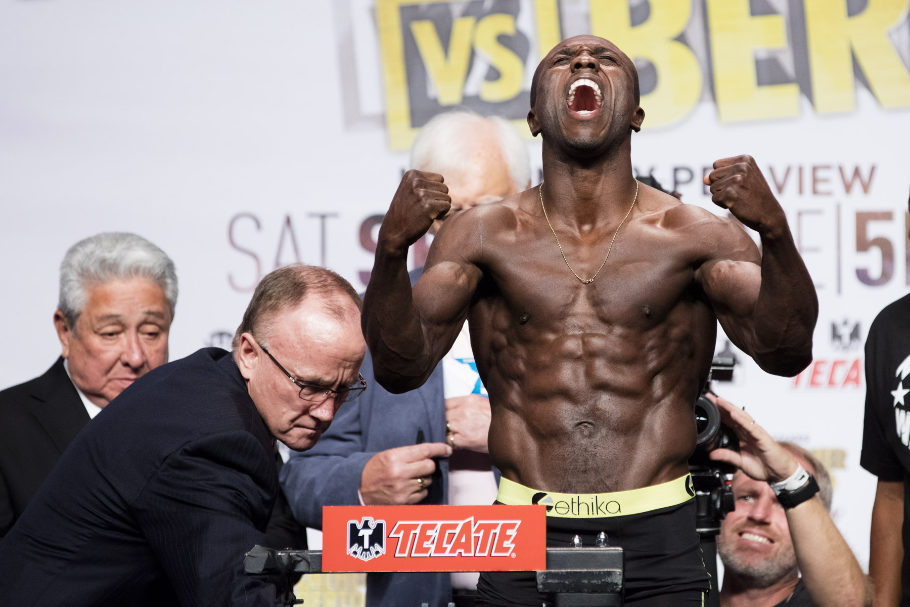 LAS VEGAS — Floyd Mayweather and Andre Berto were on target and looking ripped at yesterday’s weigh-in, respectively coming in at 146 and 145 pounds. An overwhelming favorite, the only question for some is if Mayweather will use his “last fight” to let loose and give fans a “toe to toe” fight.