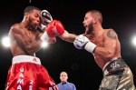 FLORES WEARS DOWN CUSOLITO: The card opened with an absolute war between Moises “Chucky” Flores and Emanual Cusolito. The two combined to throw over 1700 punches. Early on, Cusolito’s better technical skill gave him the advantage as he landed harder and cleaner power shots. By the middle rounds, Flores non-stop pressure and high punch-put began to wear on Cusolito. The late rounds was a contest of wills with Flores ending matters dramatically in the 12th.