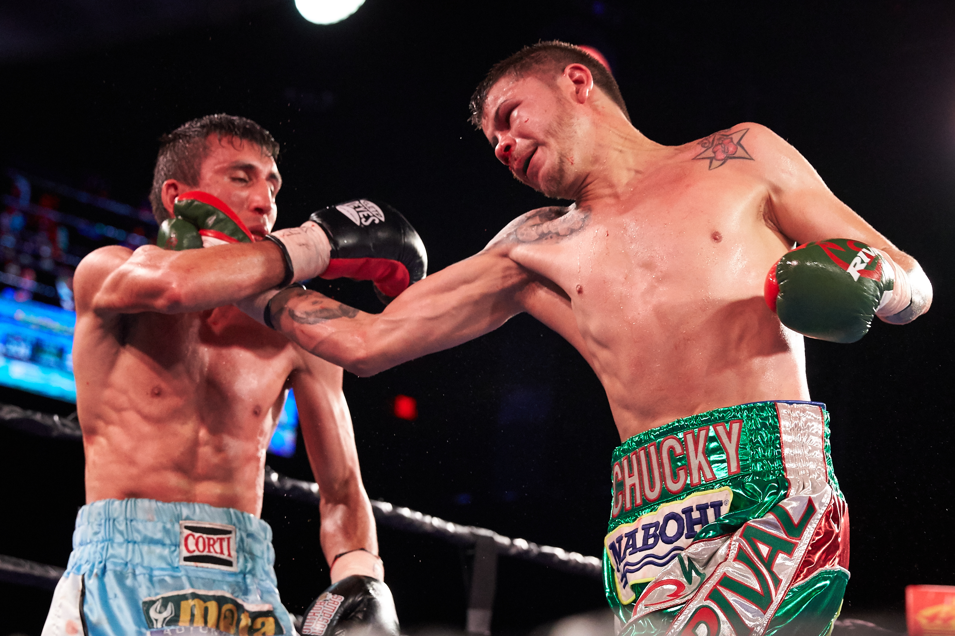 FLORES WEARS DOWN CUSOLITO: The card opened with an absolute war between Moises “Chucky” Flores and Emanual Cusolito. The two combined to throw over 1700 punches. Early on, Cusolito’s better technical skill gave him the advantage as he landed harder and cleaner power shots. By the middle rounds, Flores non-stop pressure and high punch-put began to wear on Cusolito. The late rounds was a contest of wills with Flores ending matters dramatically in the 12th.