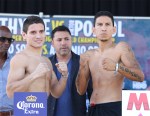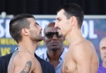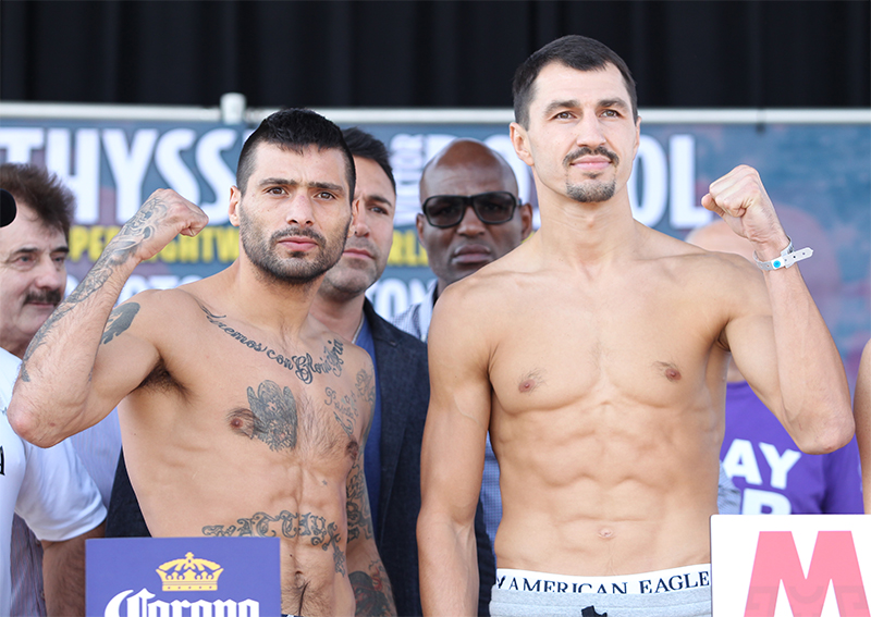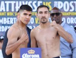 CARSON, CA — Lucas Matthysse and Viktor Postol both tipped the scales at 139.4 for their WBC super lightweight title match tomorrow on HBO. Due to his punching power and pressure, Matthysse is being touted as the favorite. But if Postol can handle La Maquina’s power, Matthysse could be in for a long night. The co-main events pits Antonio Orozco against Humberto Soto.