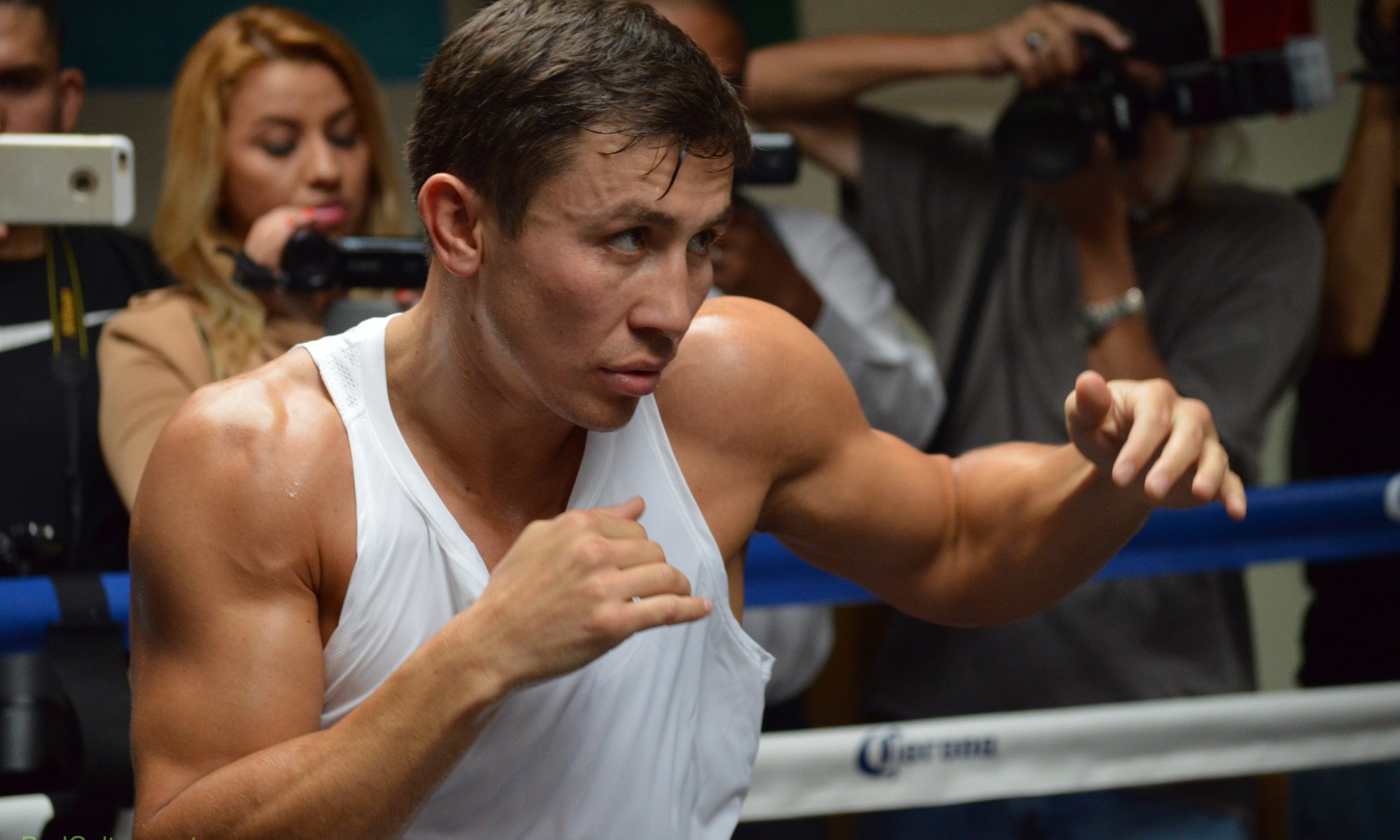 LOS ANGELES, CA — WBA middleweight titlist Gennady Golovkin and Brian Viloria met the media yesterday afternoon for their final media workout ahead of next Saturday’s (October 17) HBO pay-per-view. The card is headlined by Golovkin’s unification matchup with IBF titlist David Lemieux. Viloria will take on undefeated flyweight phenom Roman “Chocolatito” Gonzalez.