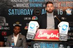 NEW YORK CITY — Errol Spence and Chris Algieri held their first face to face meeting today at Manhattan’s Gallagher Steakhouse to officially announce their April 16 fight at the Barclays. The NBC televised bout will be under the Premier Boxing Champions banner with co-features of Steve Cunningham vs. Krzysztof Glowacki, and Marcus Browne taking on Radivoje Kalajdzic.