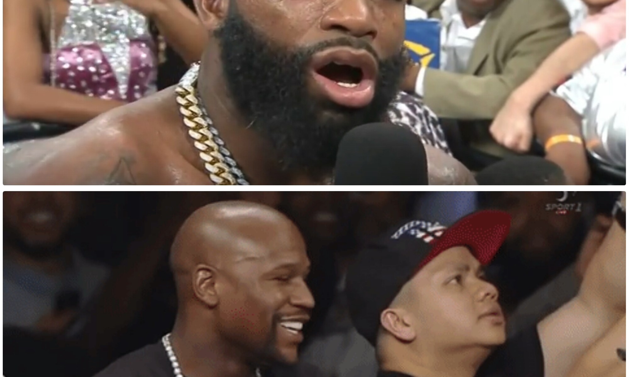 Mayweather, who was ringside tending to his fighter Theophane, had the expected response.