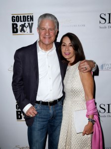 "LAS VEGAS, NV - MAY 06: Jim Lampley and Debra Schuss arrive at Smile Design Gallery's "The Art of Boxing" event at Hakkasan Las Vegas Restaurant and Nightclub at MGM Grand Hotel & Casino May 6, 2016 in Las Vegas. (Photo by Isaac Brekken/Getty Images for Smile Design Gallery)"