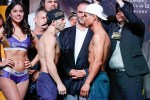 LAS VEGAS — WBA featherweight champion Carl Frampton and Leo Santa Cruz had no issues making weight this afternoon for their much-anticipated rematch Saturday night at the MGM Grand.